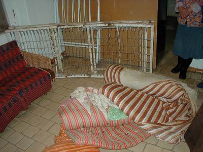 The doctor calls to his orderlies to bring out some more, and they disappear down a dank corridor for a minute then return with armfuls more of the limp mattresses.