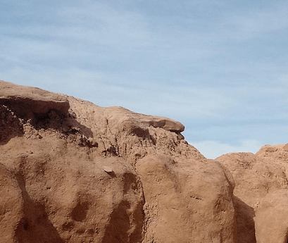 Eight miles west of Turpan, still in the oasis, is the ancient ruined city of Jiaohe. It is in the confluence of two rivers (Jiaohe means ‘the city of joining rivers’) and surrounded by greenery. Yet the city itself is nothing but golden sand and ruined sandy walls.