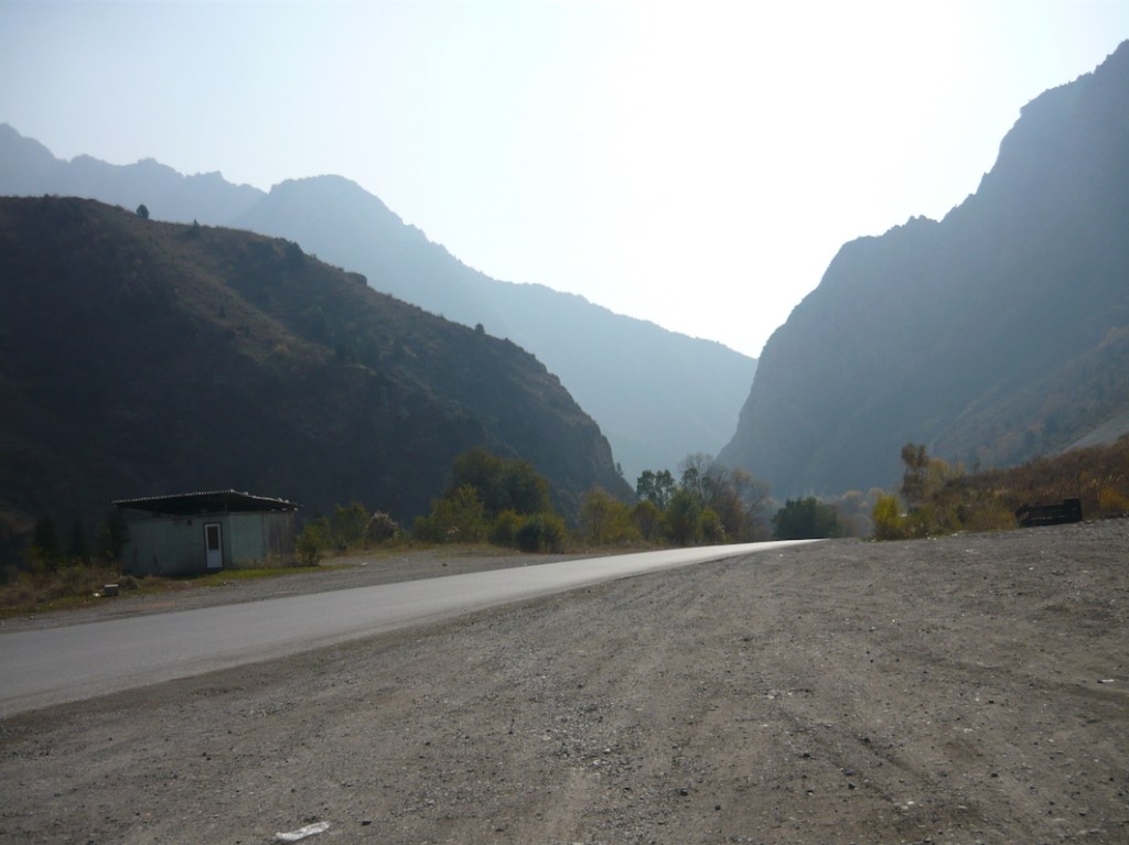 Approaching Bishkek’s main bus station, the river tumbles sullenly between concrete banks, on one side the tatty backs of a city bazaar and on the other an electricity substation. Behind them, a solitary and dilapidated Soviet era apartment block is silhouetted against the distant mountains. The leaves on the trees are turning from dark green to yellow and crispy dead brown.
