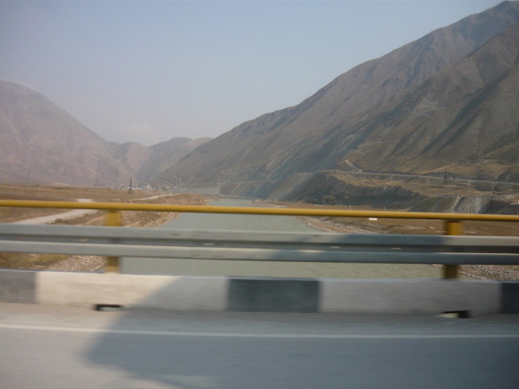 From Toktogul the road winds southwards along the deep blue Naryn river until the gorge opens out onto the wide, flat Fergana valley.