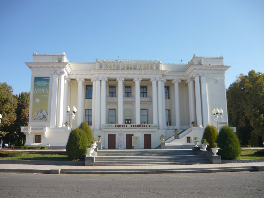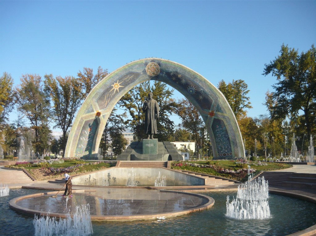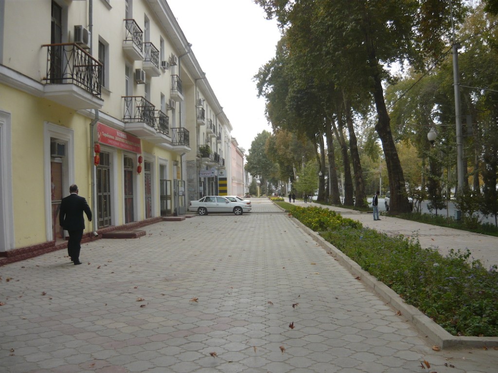 I’ms saying right on central Rudaki Avenue, close to the Opera and Ballet Theatre. It was too dark to see much when we arrived late last night, but in the morning I stroll along Rudaki Avenue, taking in the white and yellow painted buildings, the tall leafy trees (autumn hasn’t arrived here yet) and flowerbeds bursting with colour.