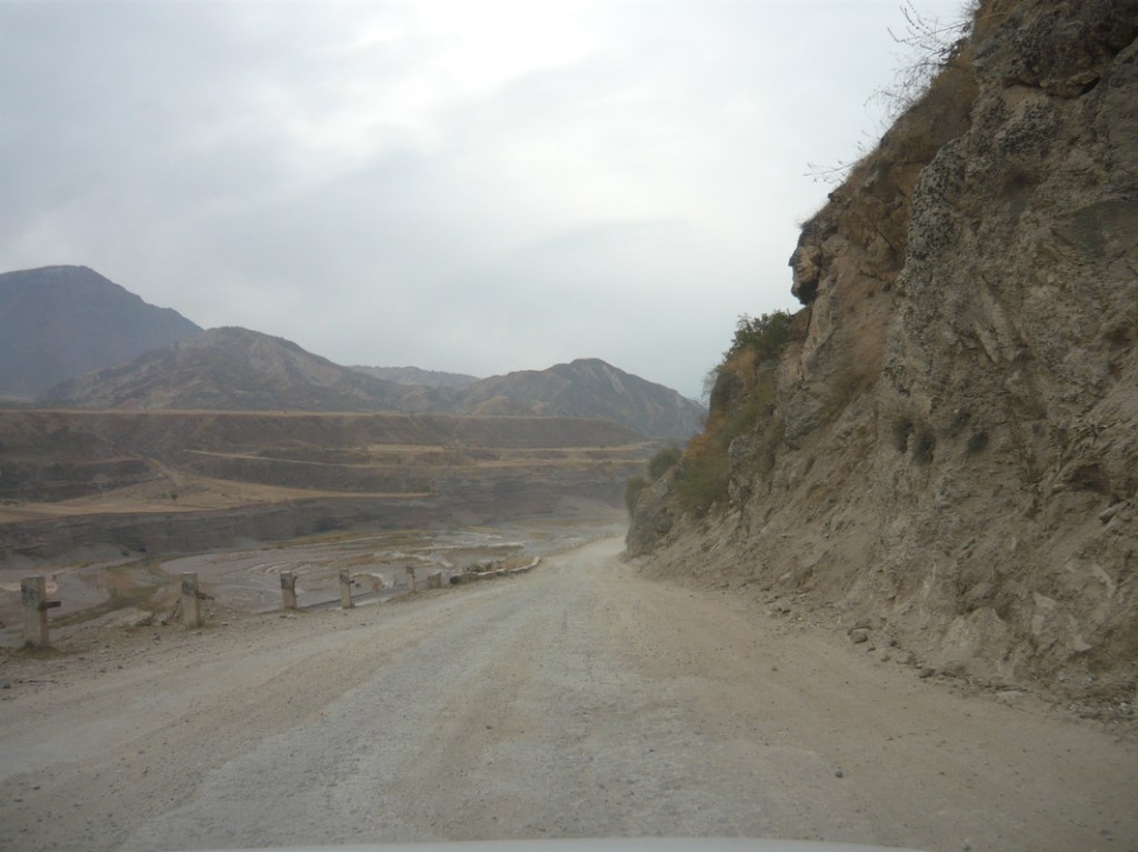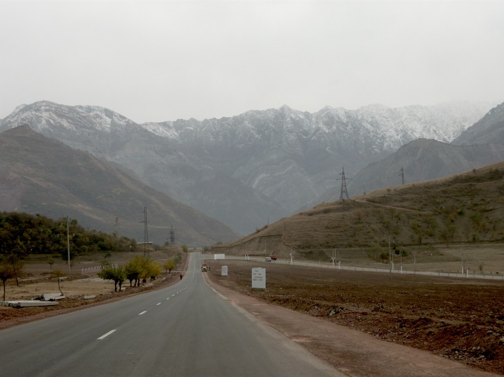 While we don’t have to scale any mountain ranges, just like the road from Khujend to Dushanbe the road to Garm takes us past towering mountains, on a mixture of paved and long-neglected winding roads.