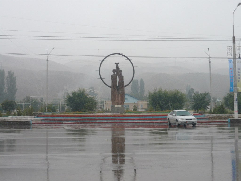 When we got to Naryn sleet was falling heavily. The city lies along a picturesque gorge with the Naryn river flowing through it, but that day the mountains barely loomed out of the gloom.