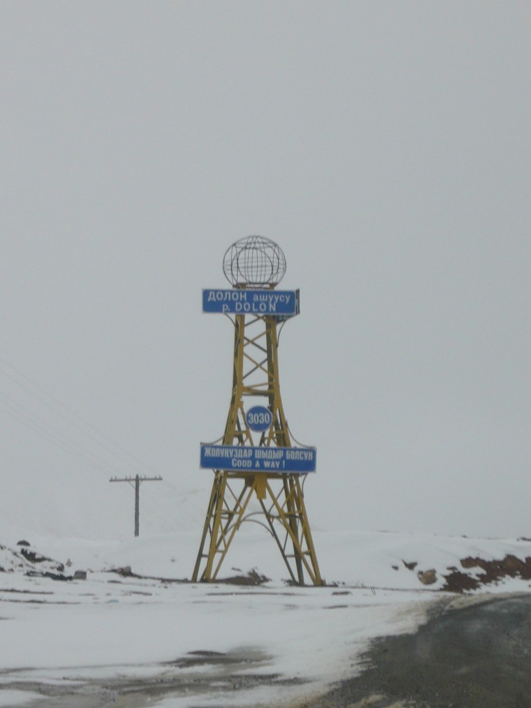 The road crosses through the Dolon pass, 3030 metres above sea level, between the Songköl Too and the Bayduluu mountain ranges. The pass is only open between June and October.