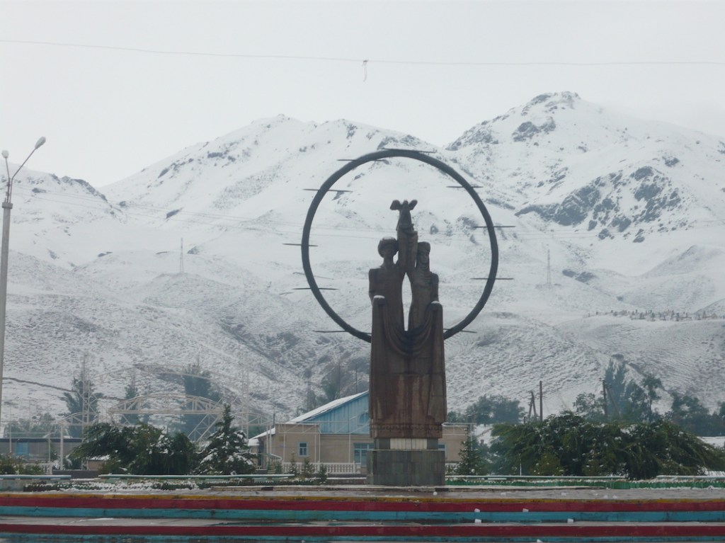 We arrived in Naryn in mist, sleet and driving winds. Out of the mist loomed the mostly Soviet-built city, but the low clouds obscured the mountains towering over it.