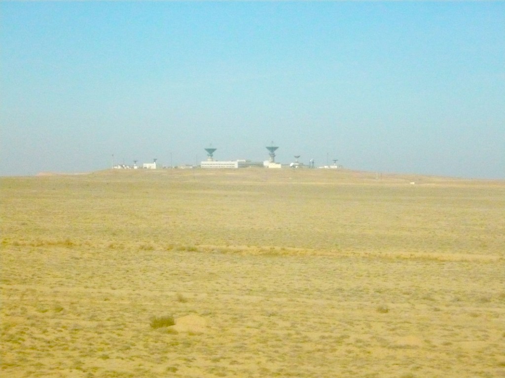 We drove in a motorcade from Kyzlyorda to the Baikonur Cosmodrome, forcing the few cars we passed onto the verge. Eventually amid some hilly land to the right of the road I saw the mushroom domes of Baikonur in the distance.