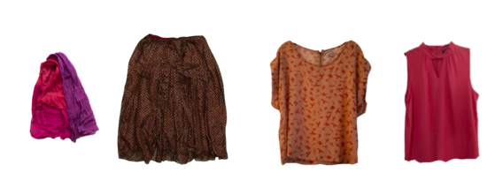 The t-shirts are too basic, there are no patterns except on the scarves, the only silhouette is crop trousers, t-shirt and scarf, even the two cardigans are really similar to each other…