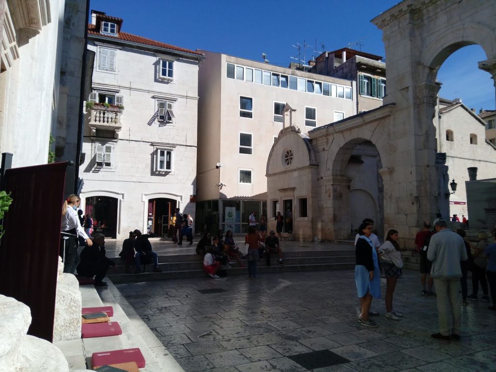 We emerged into the peristyle, one the main inner courtyard of Diocletian’s Palace, a large paved courtyard flanked by the Temple of Jupiter.
