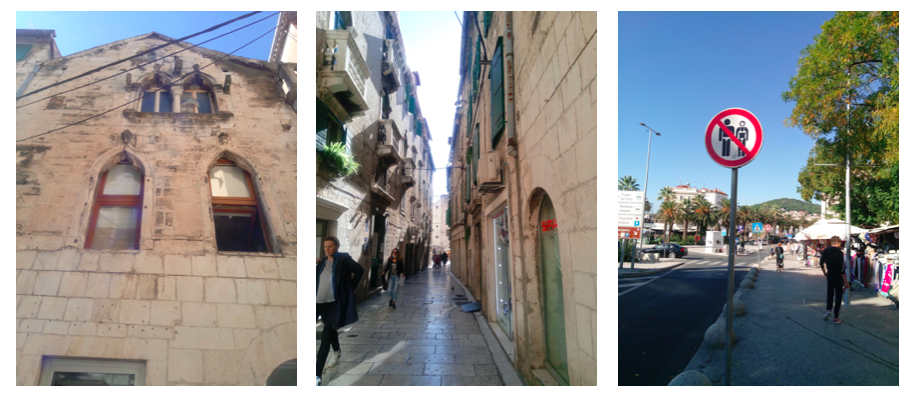 One of the things I most love about Split is the way people go about their daily lives among the Roman and mediaeval buildings in the old town. They’re not turned into museums or fenced off to the public — you can have a cup of coffee (as we did) in the Peristyle then walk a couple of minutes through ancient winding streets to buy a pair of leggings (again, as we did) to head off a laundry crisis.